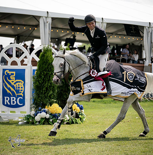 Photo at Right: David Arcand and Phil v/h Wezelse Heihoeve celebrate their victory in the $50,000 RBC Grand Prix. Photo by Ben Radvanyi Photography