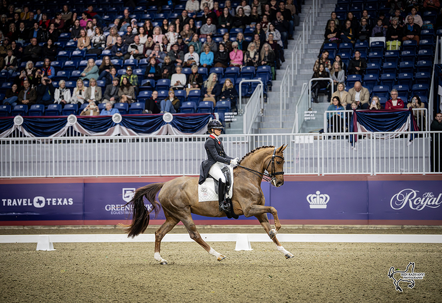 Rounding out the top three, Canada’s Denielle Gallagher of Morriston, FL, rode her and Ellen Lazarus’ 13-year-old buckskin Lusitano gelding, Come Back de Massa (Galopin de la Font x Quixote SDS), to music inspired by the movie “Spirit”. Their final score tallied at 73.175%, a personal best.