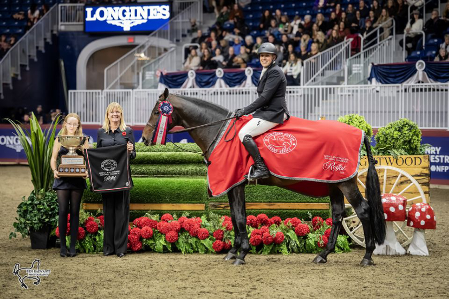 Closing out the evening’s spotlight on the hunter discipline, 19-year-old Kyleigh Whitwell of Oshawa, ON, riding Evinrude du Gibet for owner Mark Hayes, was presented with The Posh Award. The special honour is given to the highest scoring junior/amateur rider in the Canadian Hunter Derby Championship, generously sponsored by Cawthra Burns in recognition of her beloved hunter, Posh.