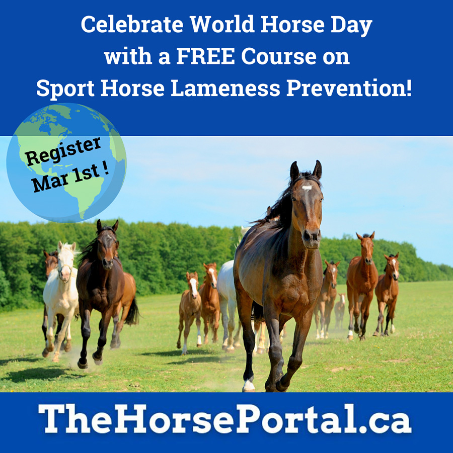 Take advantage of the FREE registration on World Horse Day, March 1, 2025 and sign up for Sport Horse Lameness/Injury Prevention, on TheHorsePortal.com.